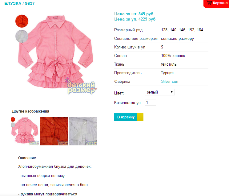 Хлопчатобумажная блузка для девочек:
