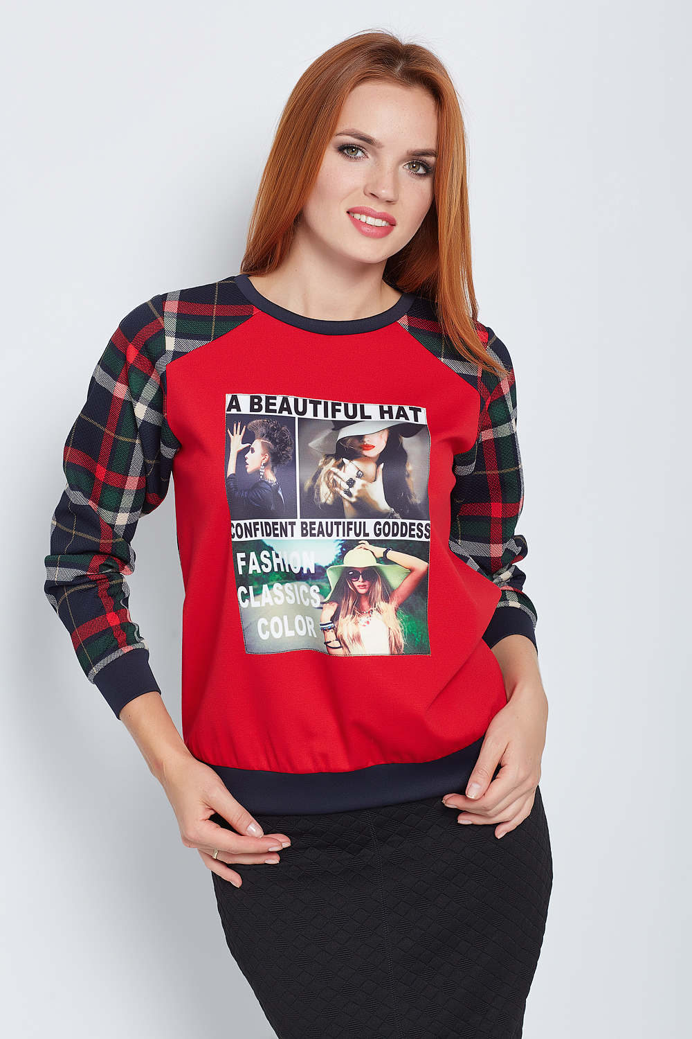 - рукав и спинка выполнены из трикотажа с принтом "клетка"